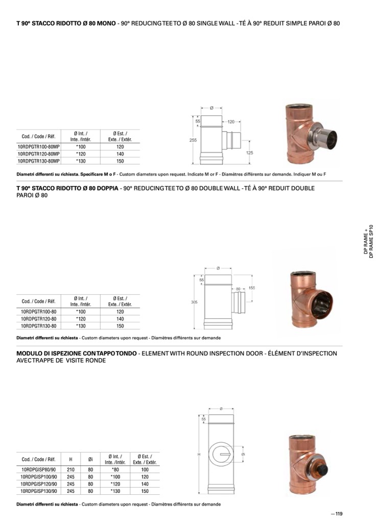 T 90° STACCO RIDOTTO Ø 80 DOPPIA - 90° REDUCING TEE TO Ø 80 DOUBLE WALL - TÉ À 90° REDUIT DOUBLE