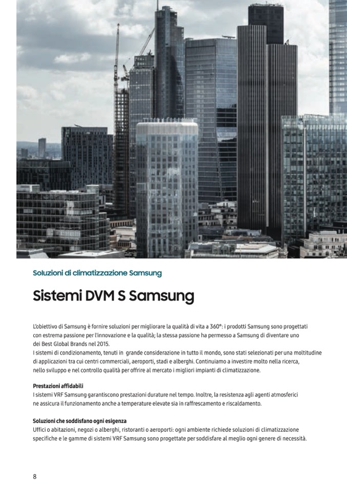 I sistemi VRF Samsung garantiscono prestazioni durature nel tempo. Inoltre, la resistenza agli agenti atmosferici