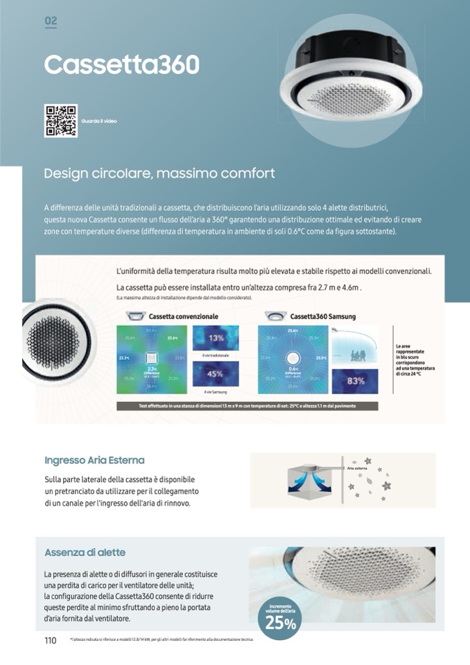 Test effettuato in una stanza di dimensioni 13 m x 9 m con temperatura di set: 25°C e altezza 1.1 m dal pavimento