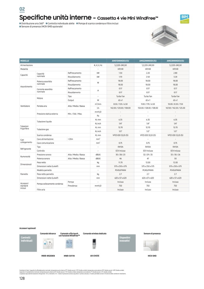 Lunghezza equivalente tubazione refrigerante: 7.5 m; Dislivello: 0 m - Valore di pressione sonora acquisito in camera anecoica. Il valore potrebbe variare in funzione delle condizioni installative.