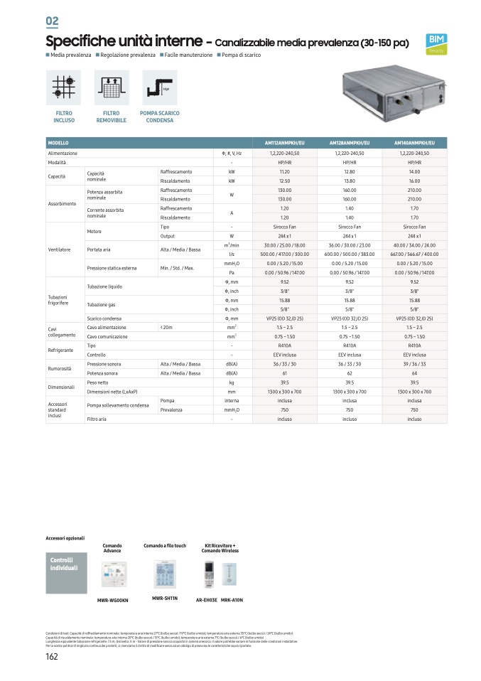 Lunghezza equivalente tubazione refrigerante: 7.5 m; Dislivello: 0 m - Valore di pressione sonora acquisito in camera anecoica. Il valore potrebbe variare in funzione delle condizioni installative.