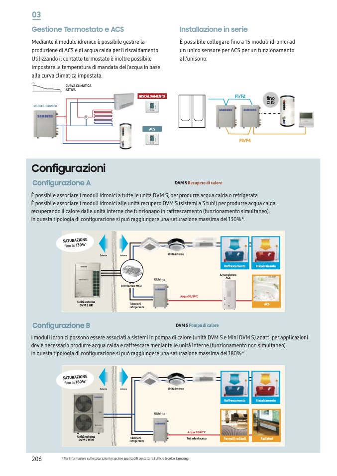 I moduli idronici possono essere associati a sistemi in pompa di calore (unità DVM S e Mini DVM S) adatti per applicazioni
