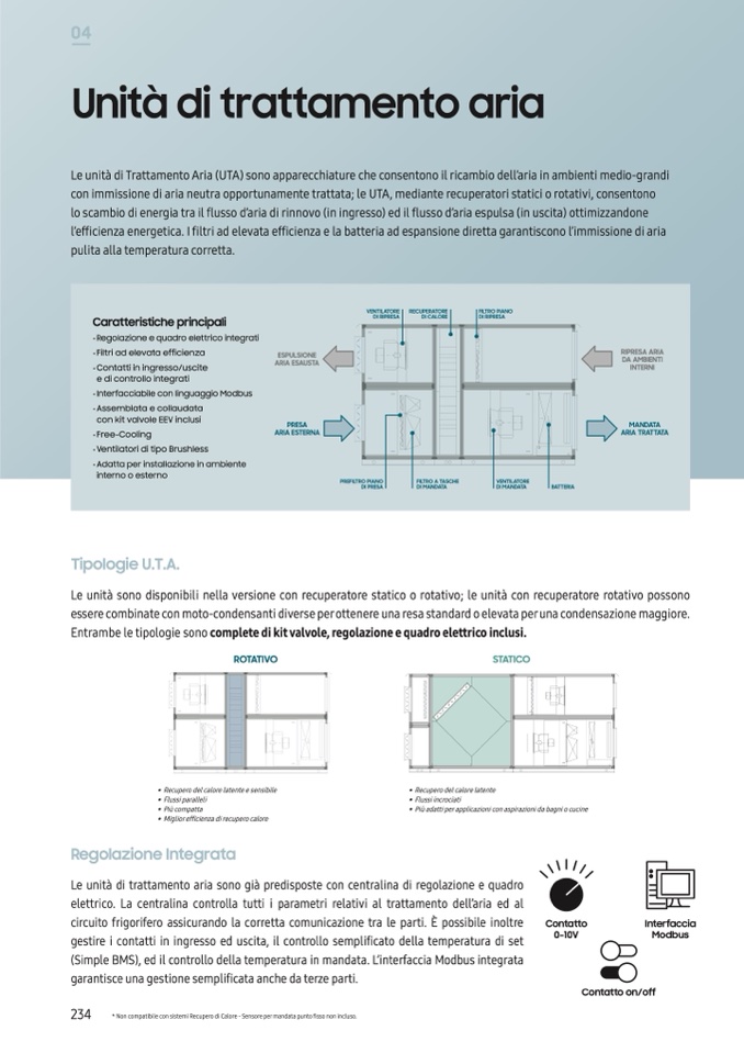 Le unità sono disponibili nella versione con recuperatore statico o rotativo; le unità con recuperatore rotativo possono
