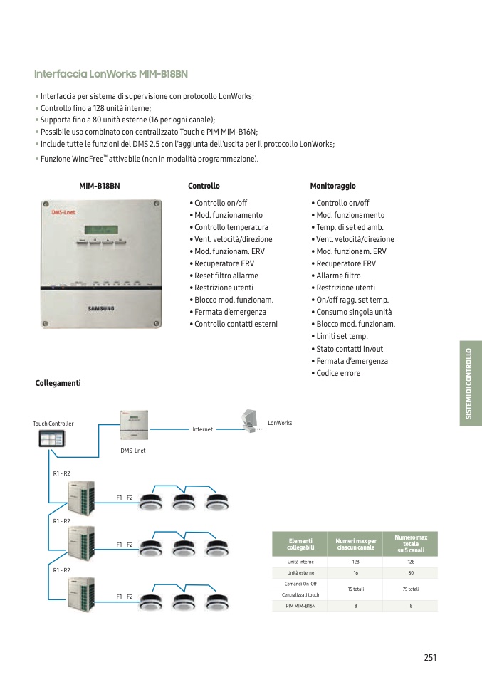 • Possibile uso combinato con centralizzato Touch e PIM MIM-B16N;