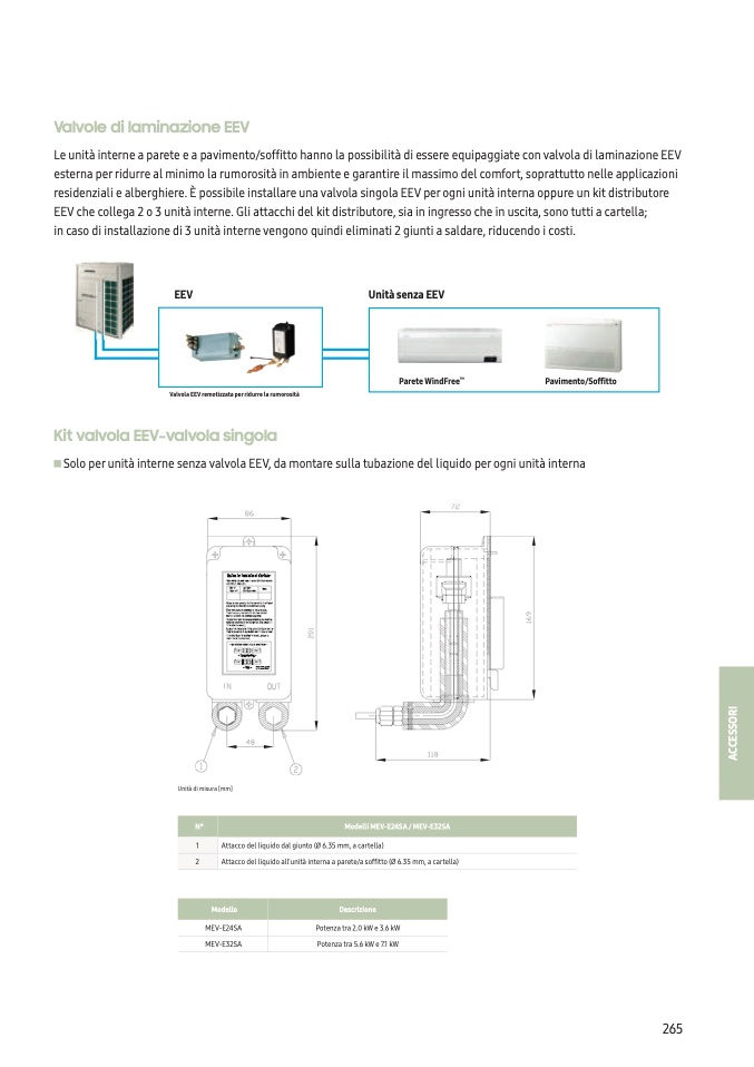 e unit interne a parete e a pavimentosoffitto hanno la possibilit di essere equipaggiate con valvola di laminazione EE
