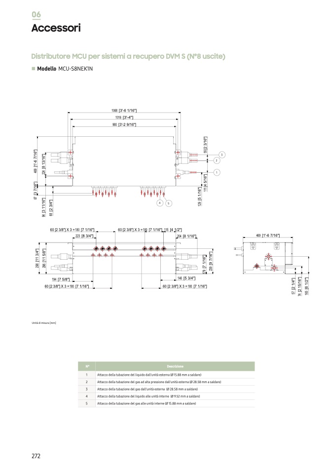 Attacco della tubazione del gas alle unità interne (Ø 15.88 mm a saldare)