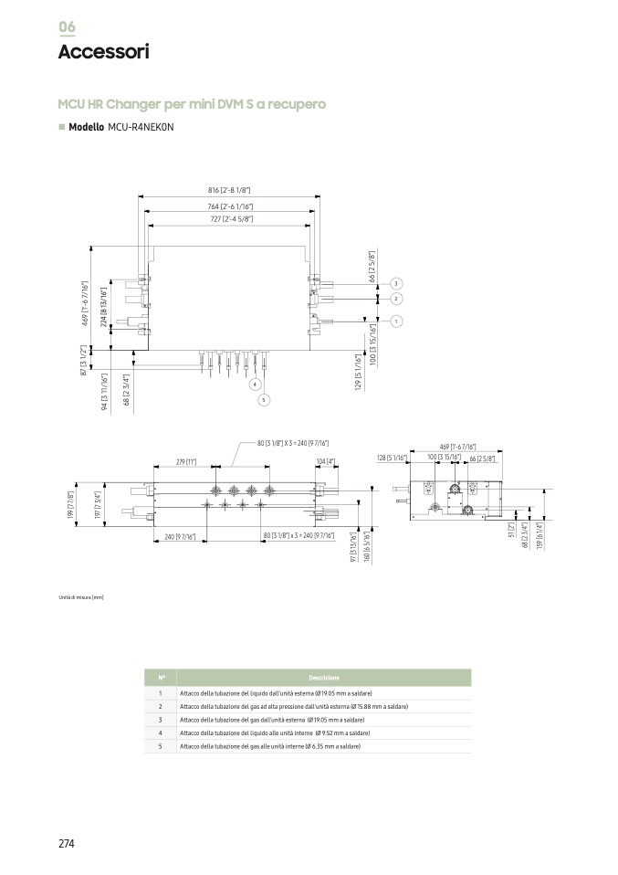 Attacco della tubazione del gas alle unità interne (Ø 6.35 mm a saldare)