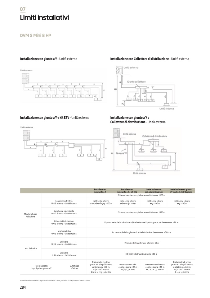 Se la distanza tra l'unità esterna e la più lontana unità interna è > 90 m, aumentare di una taglia il primo tratto di tubazione.