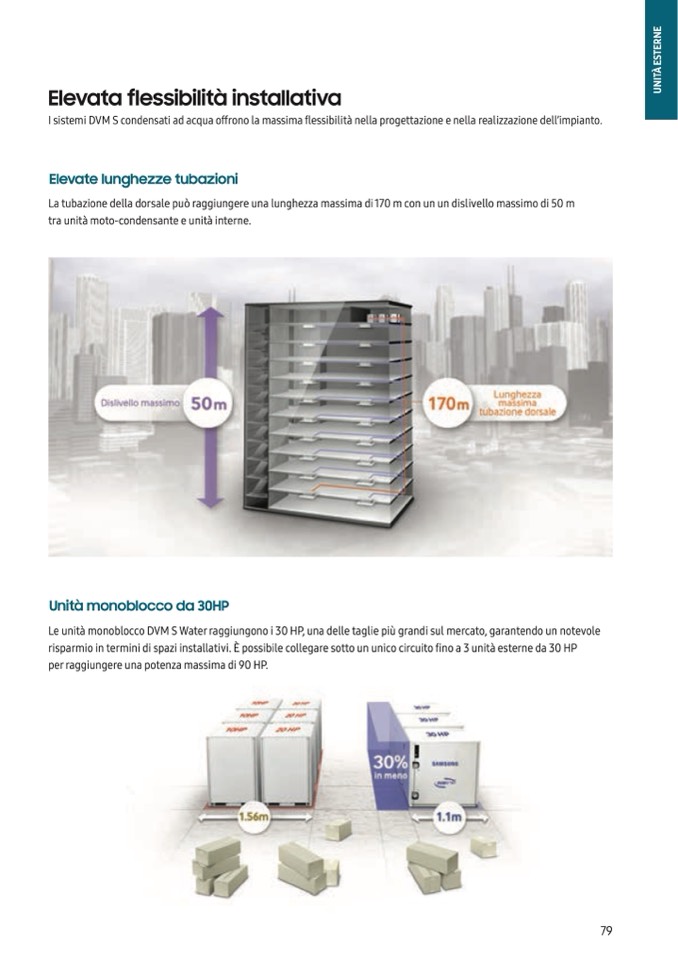 risparmio in termini di spazi installativi. È possibile collegare sotto un unico circuito fino a 3 unità esterne da 30 HP