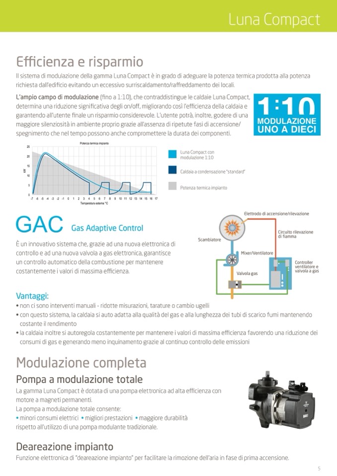 Il sistema di modulazione della gamma Luna Compact è in grado di adeguare la potenza termica prodotta alla potenza