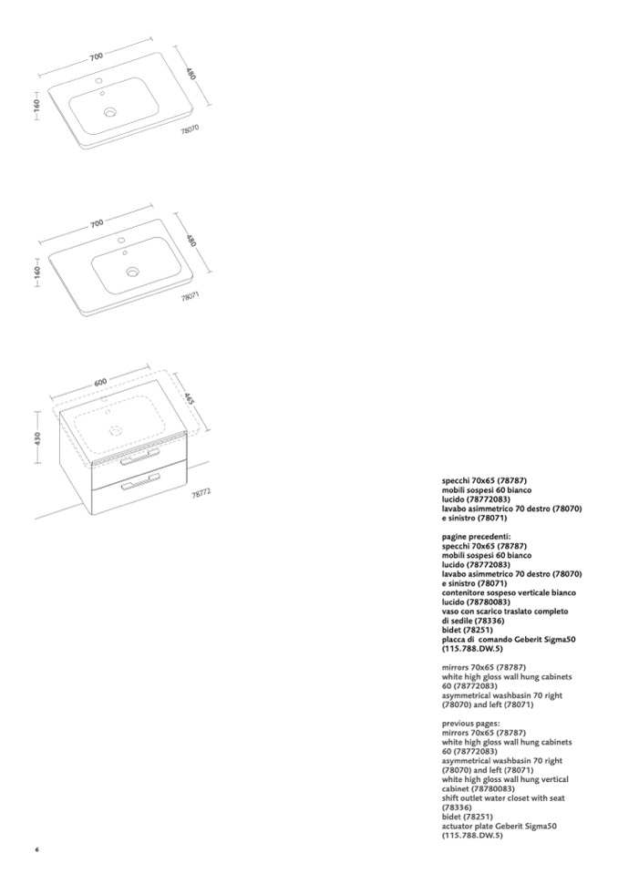 lavabo asimmetrico 70 destro (78070)