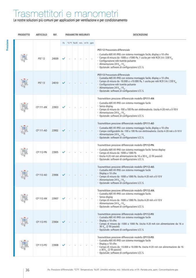 ∙ Campo di misura da -100 a 100 Pa con elettrovalvola . Uscita 4-20 mA o 0-10 V