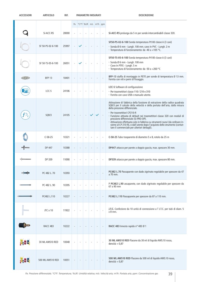 Pa: Pressione differenziale; °C/°F: Temperatura; %UR: Umidità relativa; m/s: Velocit