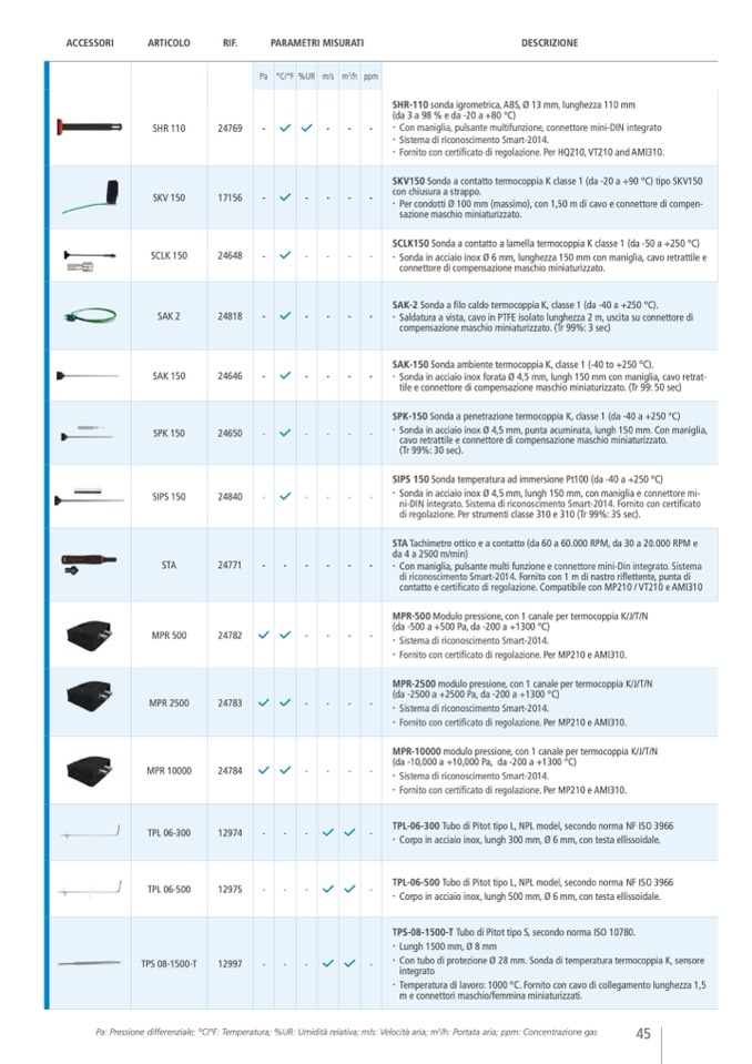 ∙ Fornito con certificato di regolazione . Per HQ210, VT210 and AMI310
