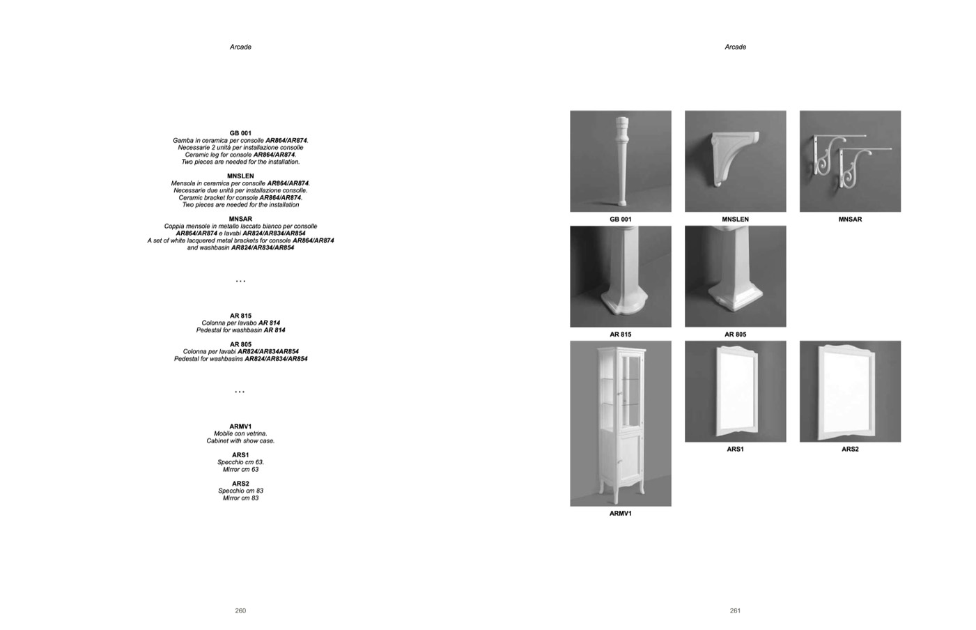 AR864/AR874 e lavabi AR824/AR834/AR854