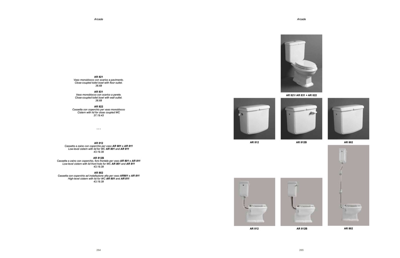 Low-level cistern with lid front hole for WC AR 801 and AR 811