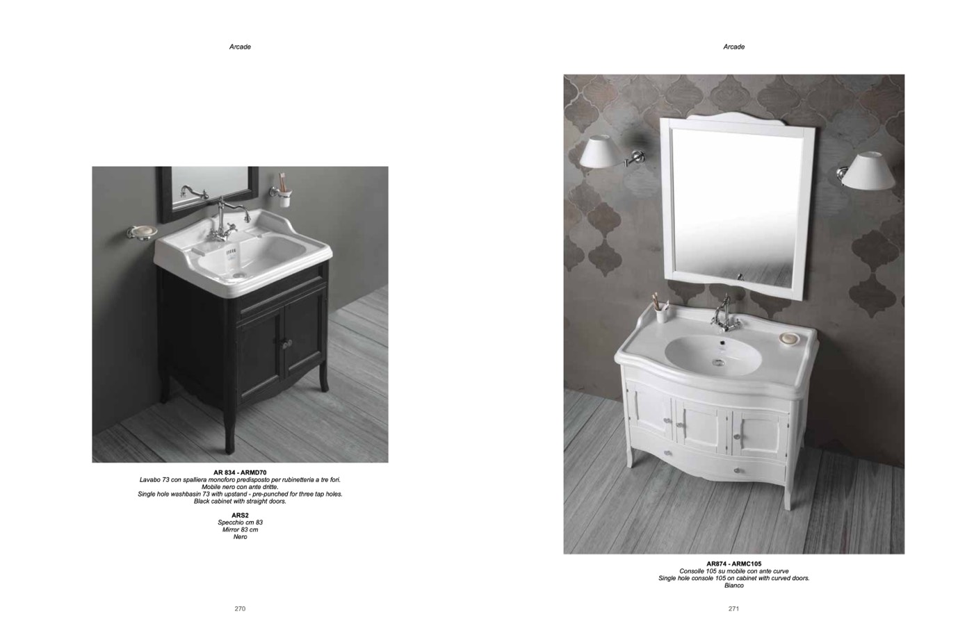 Lavabo 73 con spalliera monoforo predisposto per rubinetteria a tre fori.
