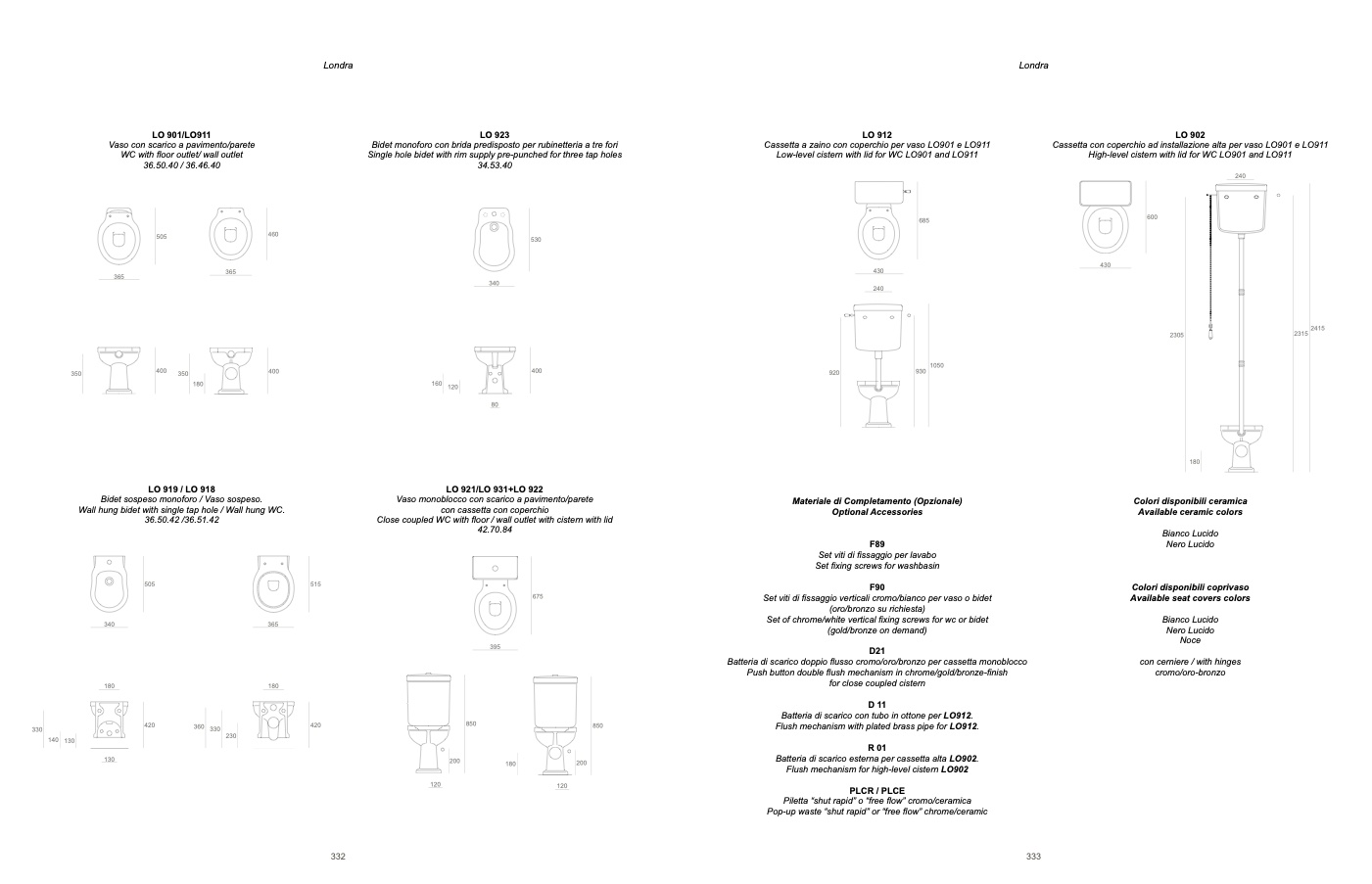 Cassetta con coperchio ad installazione alta per vaso LO901 e LO911