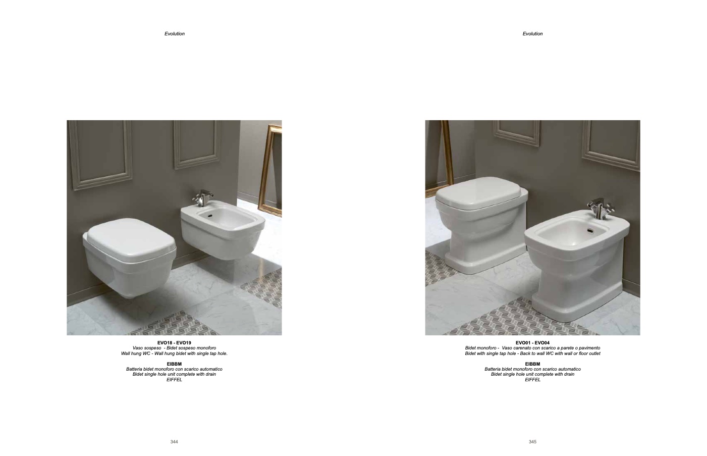 Bidet monoforo - Vaso carenato con scarico a parete o pavimento
