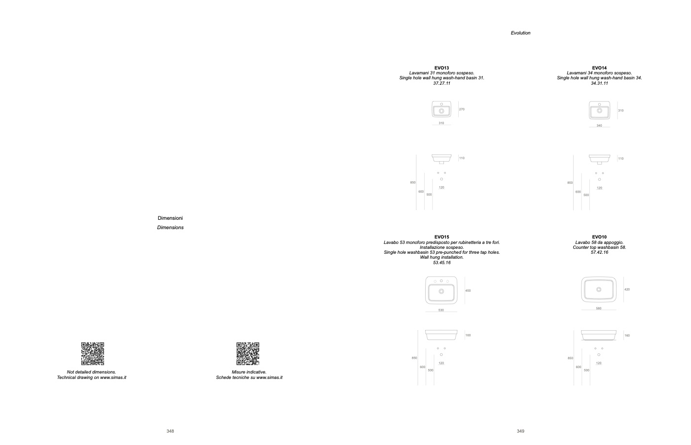 Lavabo 53 monoforo predisposto per rubinetteria a tre fori.