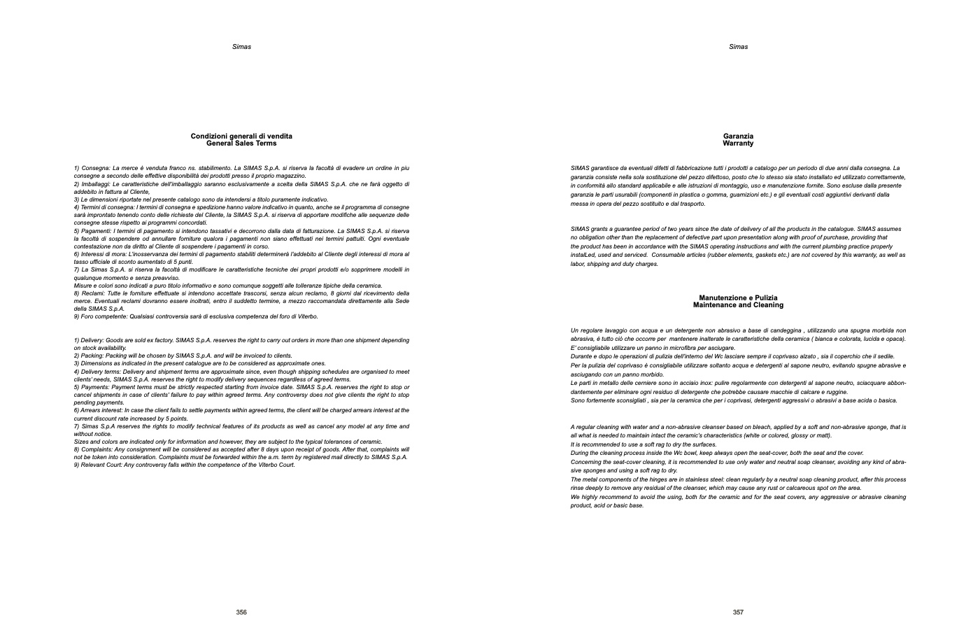 1) Delivery: Goods are sold ex factory. SIMAS S.p.A. reserves the right to carry out orders in more than one shipment depending