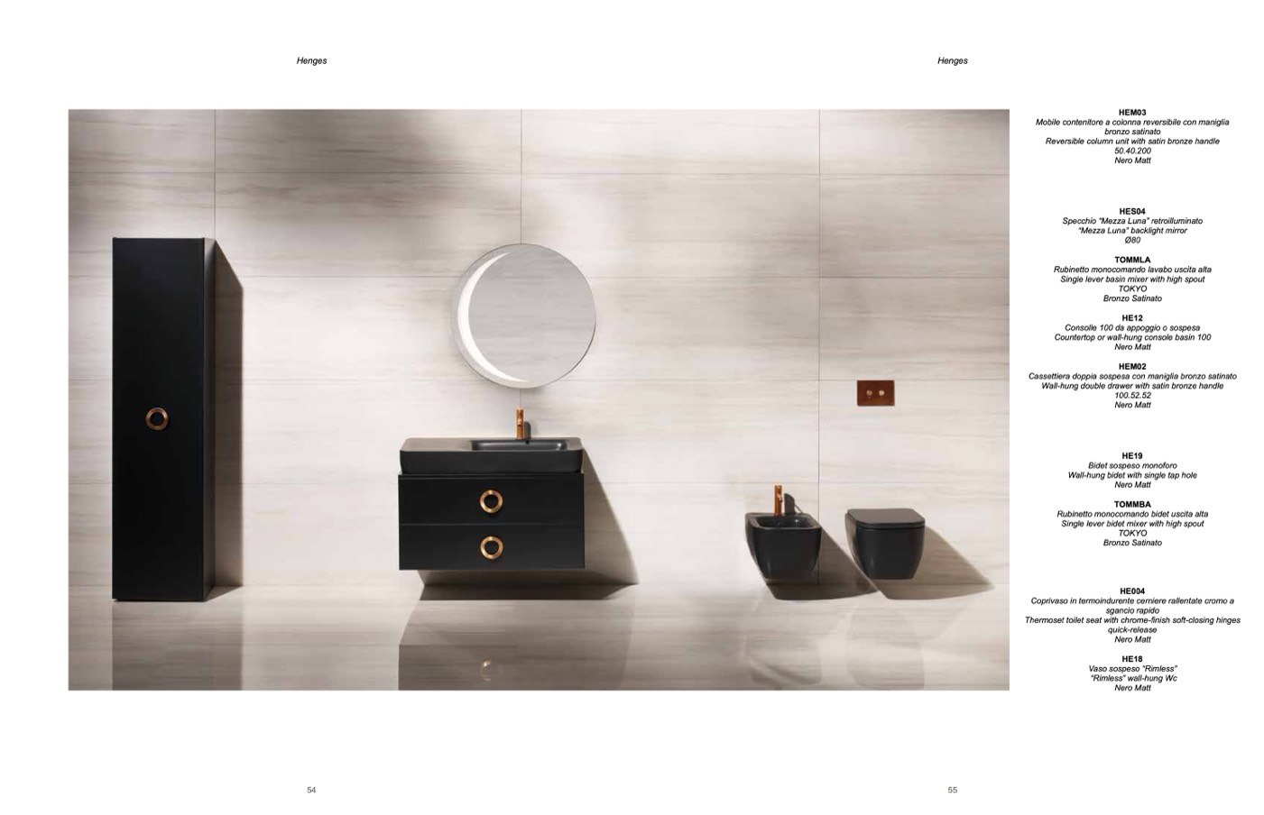 Wall-hung double drawer with satin bronze handle