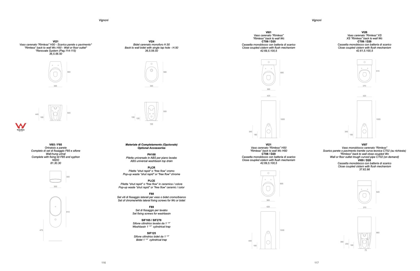 “Rimless” back to wall Wc H50 - Wall or floor outlet*