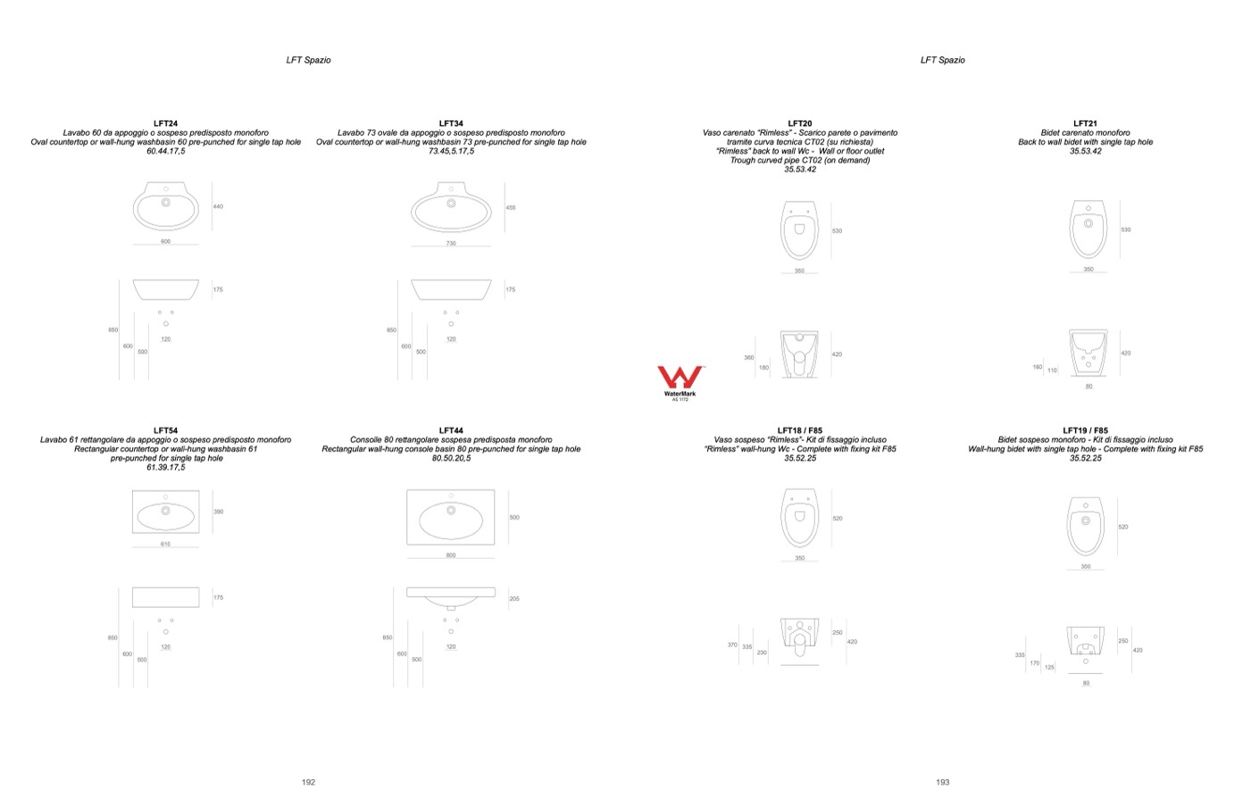 “Rimless” wall-hung Wc - Complete with fixing kit F85