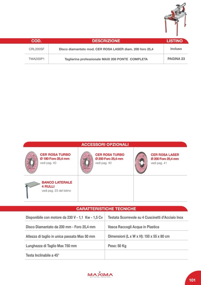 Taglierina professionale MAXI 200 PONTE COMPLETA