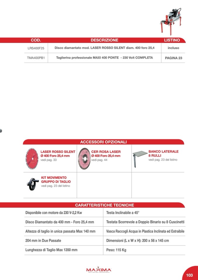Taglierina professionale MAXI 400 PONTE - 230 Volt COMPLETA