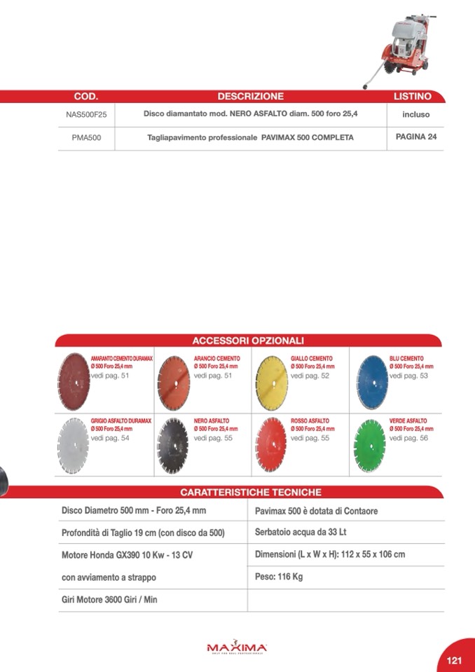 Tagliapavimento professionale PAVIMAX 500 COMPLETA
