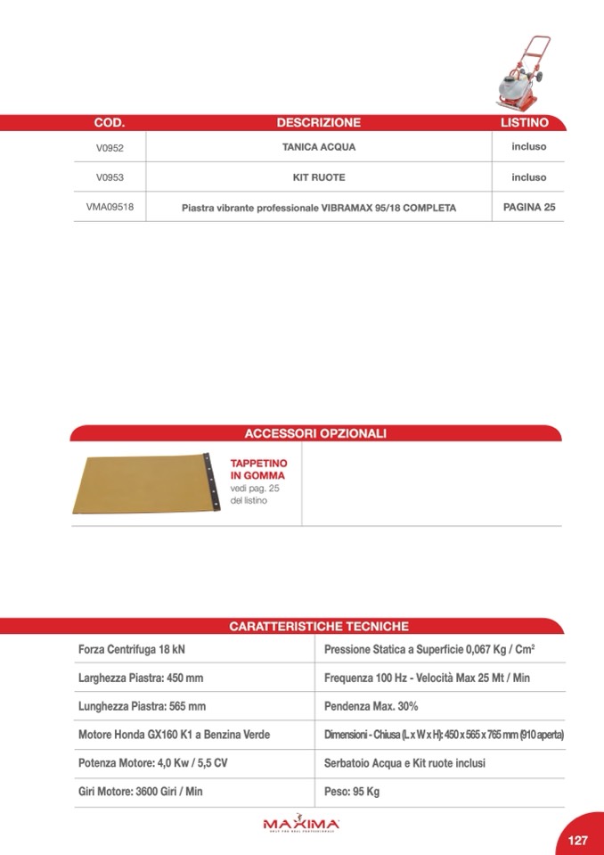 Piastra vibrante professionale VIBRAMAX 95/18 COMPLETA