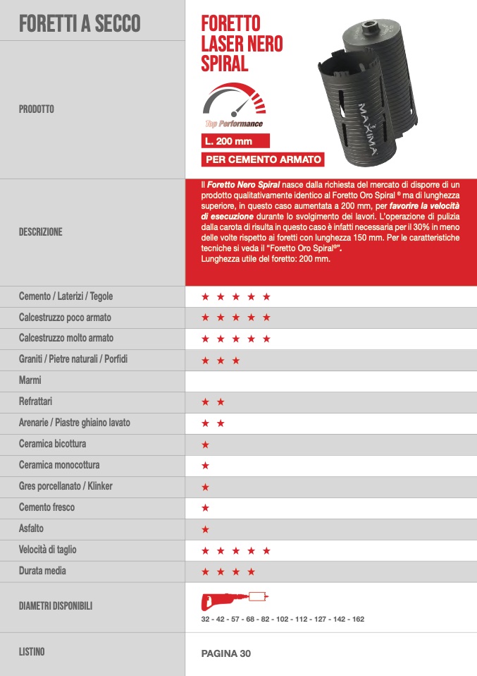 Lunghezza utile del foretto: 200 mm.