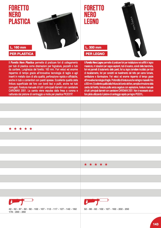 corrugati. Foratura manuale di tutti i principali diametri con carotatore
