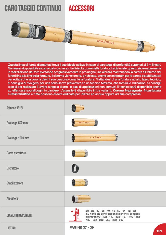 Questa linea di foretti diamantati trova il suo ideale utilizzo in caso di carotaggi di profondità superiori ai 2 m lineari.