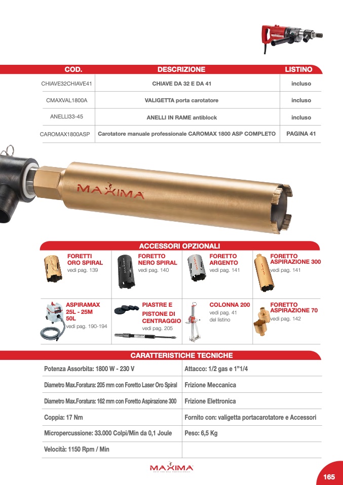 Carotatore manuale professionale CAROMAX 1800 ASP COMPLETO