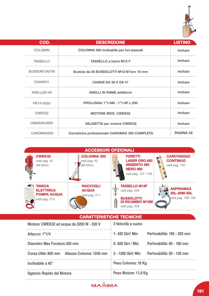 Carotatrice professionale CAROMAX 300 COMPLETA