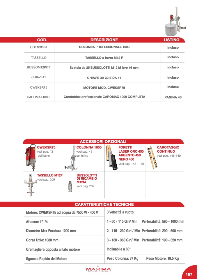 Carotatrice professionale CAROMAX 1000 COMPLETA