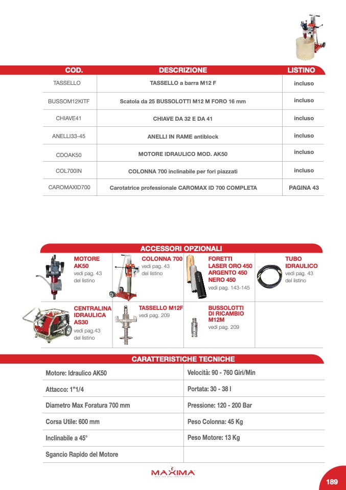 Carotatrice professionale CAROMAX ID 700 COMPLETA