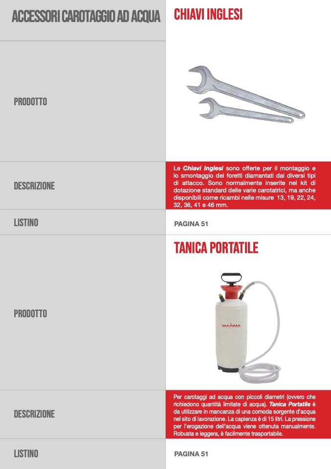 ACCESSORI CAROTAGGIO aD ACQUA