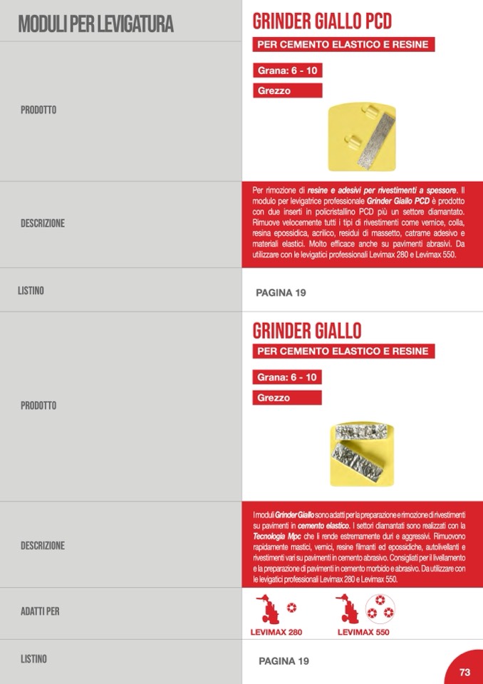 utilizzare con le levigatici professionali Levimax 280 e Levimax 550.