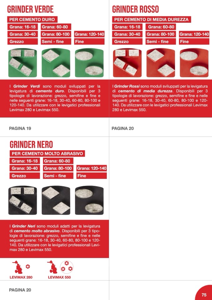 di cemento molto abrasivo. Disponibili per 3 tipo-