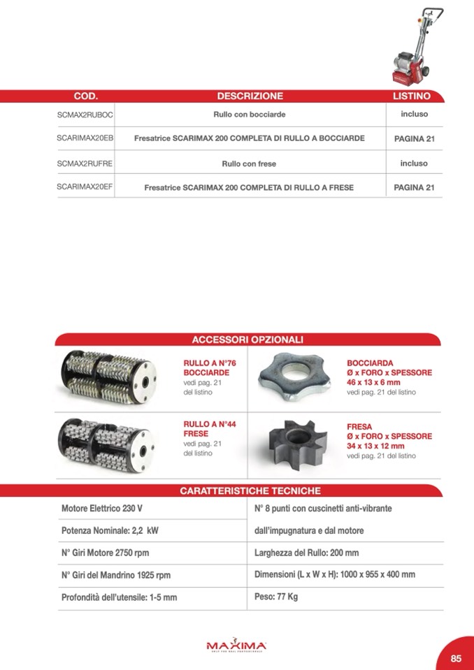 Fresatrice SCARIMAX 200 COMPLETA DI RULLO A BOCCIARDE