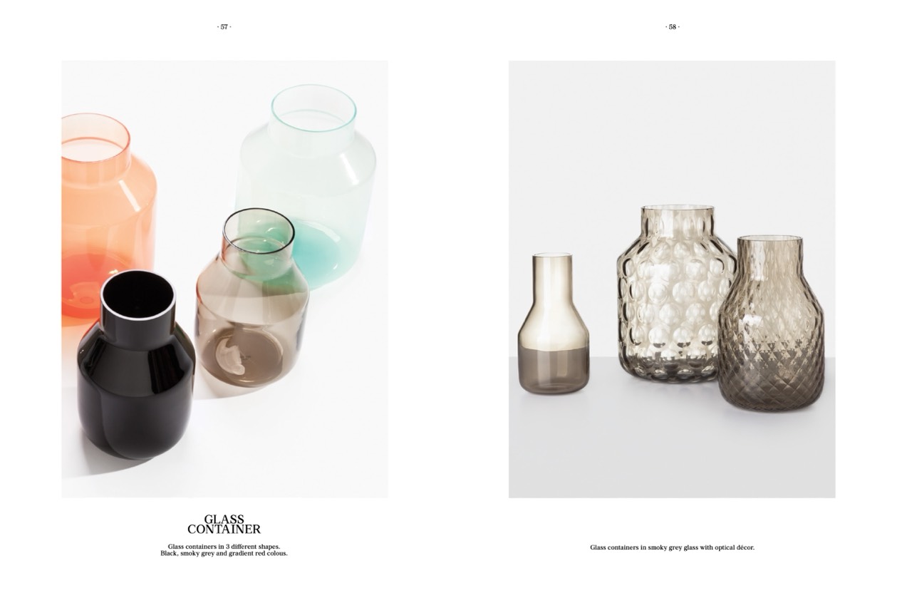 Glass containers in smoky grey glass with optical décor.