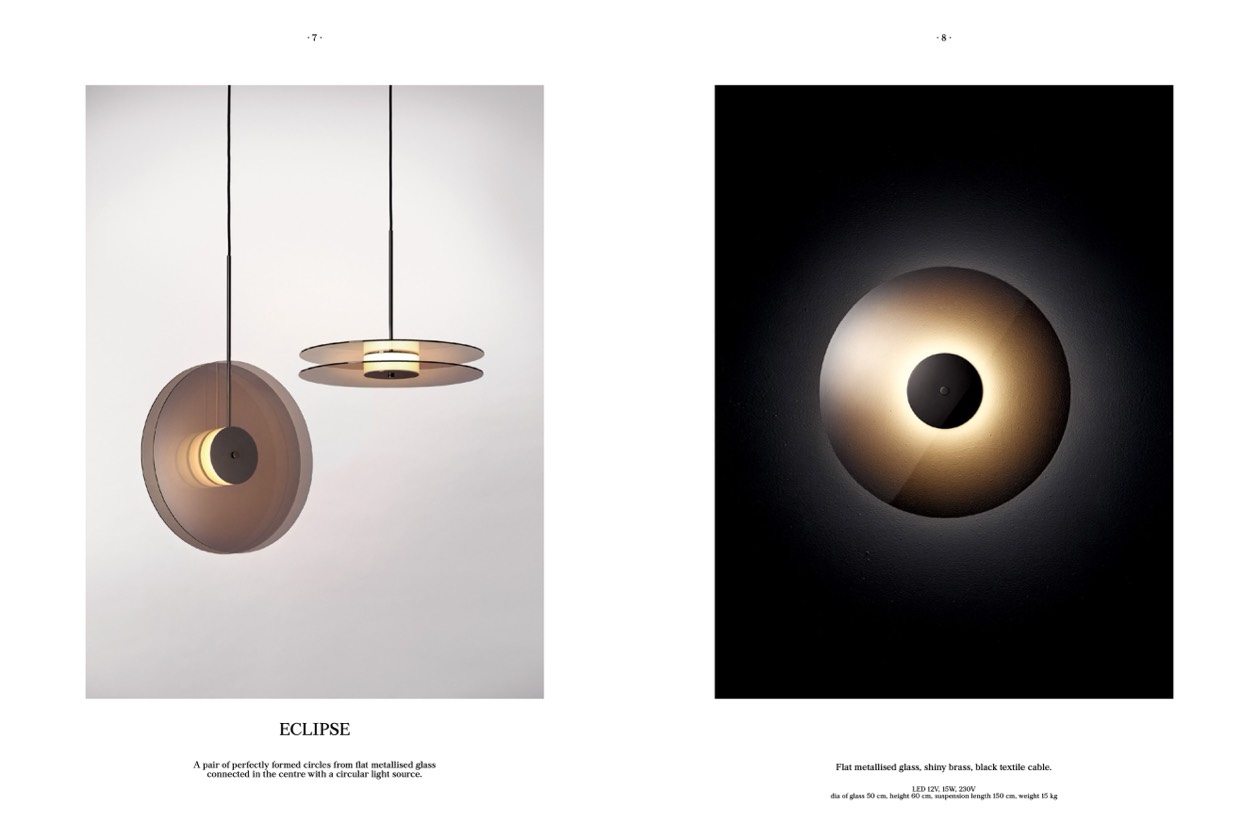 Flat metallised glass, shiny brass, black textile cable.