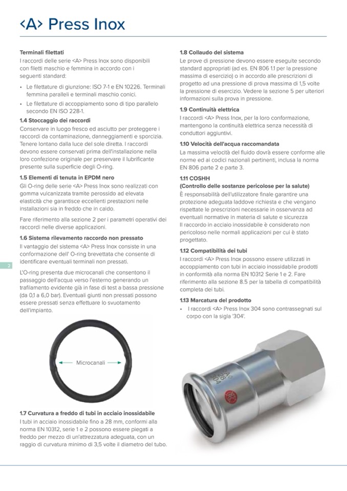 • I raccordi <A> Press Inox 304 sono contrassegnati sul