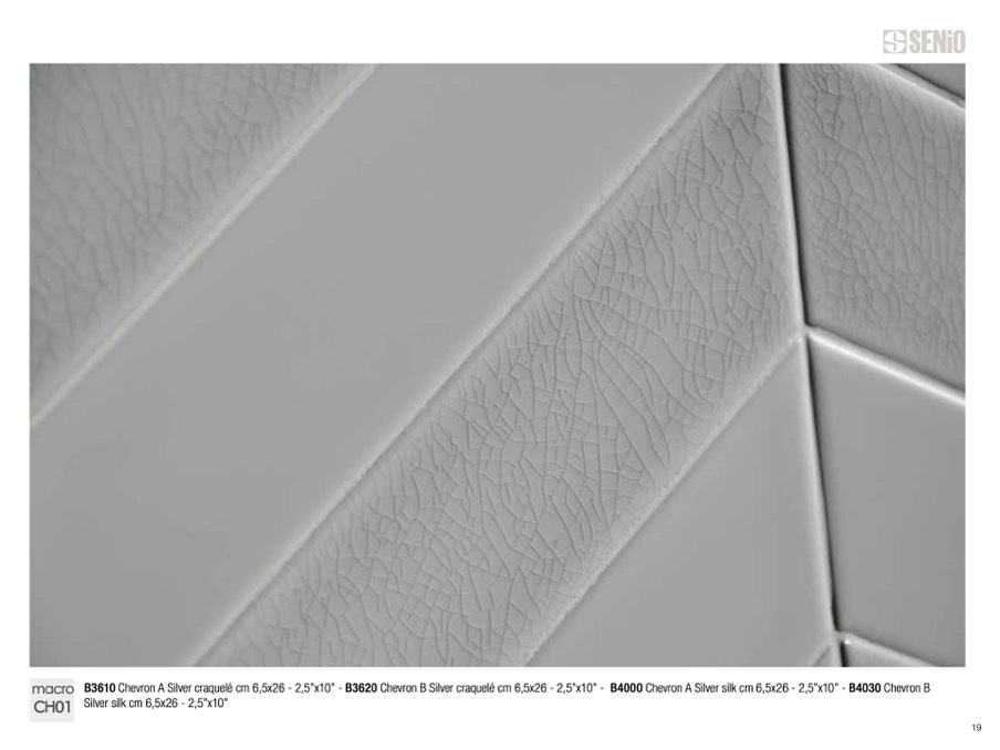 B3610 Chevron A Silver craquelé cm 6,5x26 - 2,5”x10” - B3620 Chevron B Silver craquelé cm 6,5x26 - 2,5”x10” - B4000 Chevron A Silver silk cm 6,5x26 - 2,5”x10” - B4030 Chevron B