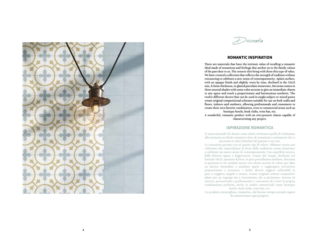 size, 8.5mm thickness, in glazed porcelain stoneware, Decorata comes in