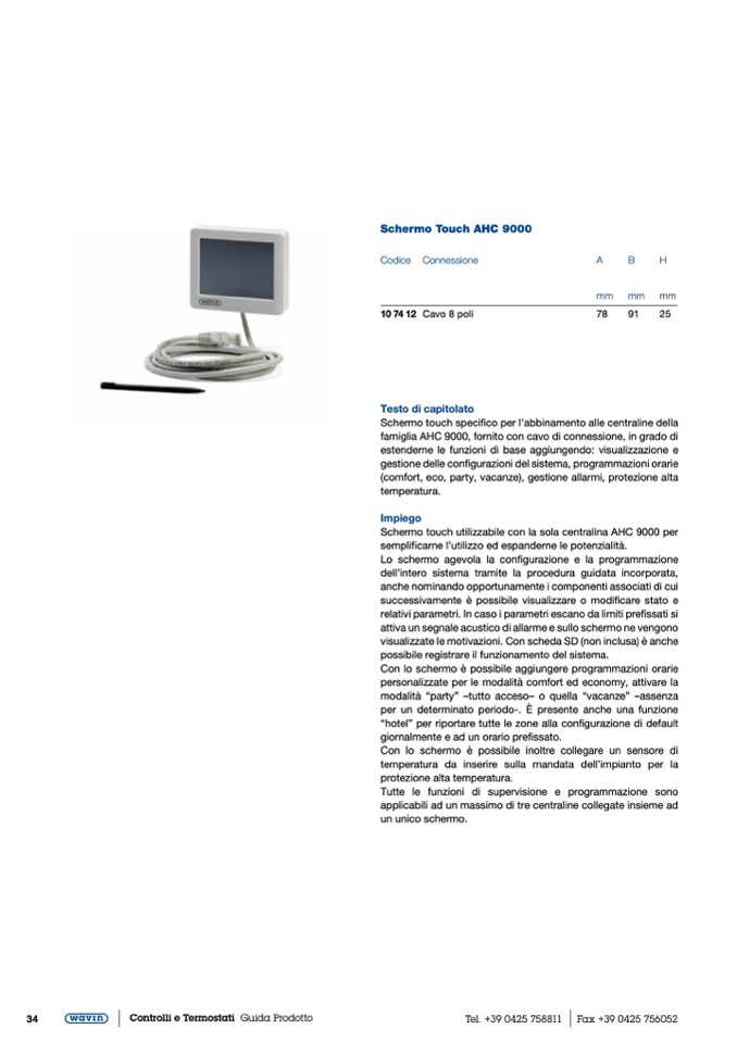 Schermo touch utilizzabile con la sola centralina AHC 9000 per