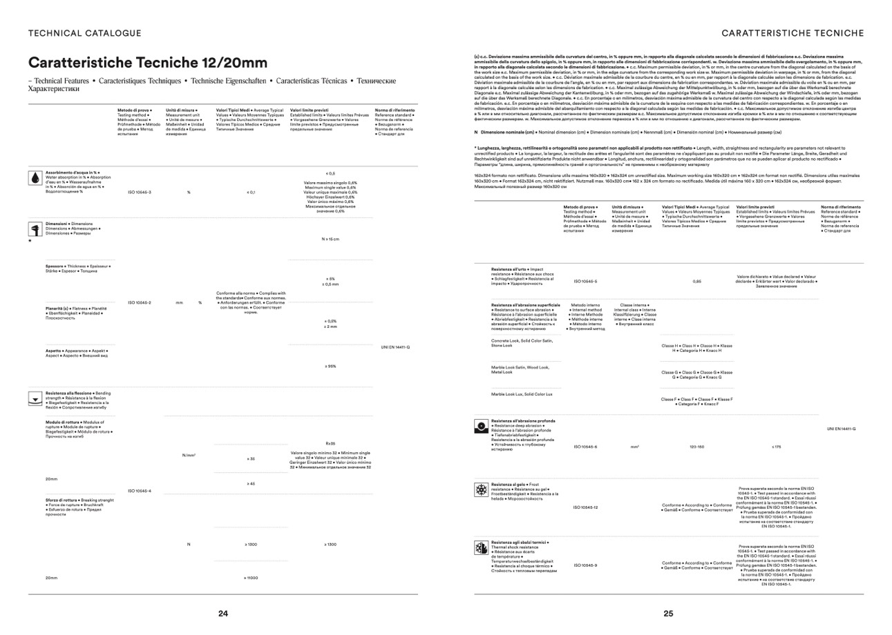 * Lunghezza, larghezza, rettilinearità e ortogonalità sono parametri non applicabili al prodotto non rettificato • Length, width, straightness and rectangularity are parameters not relevant to